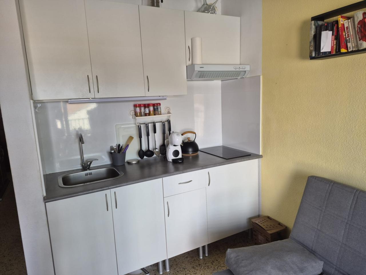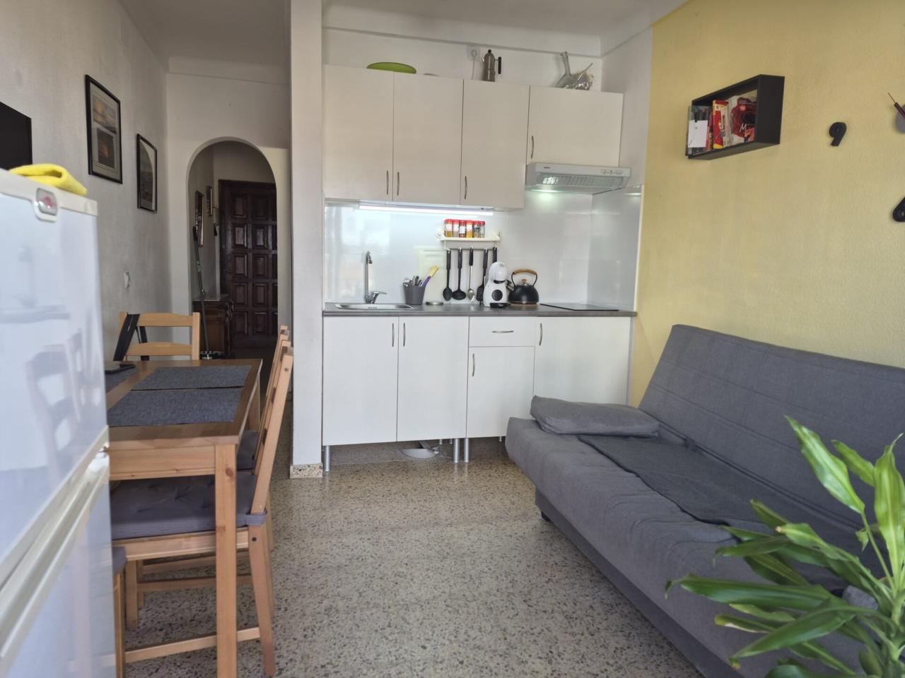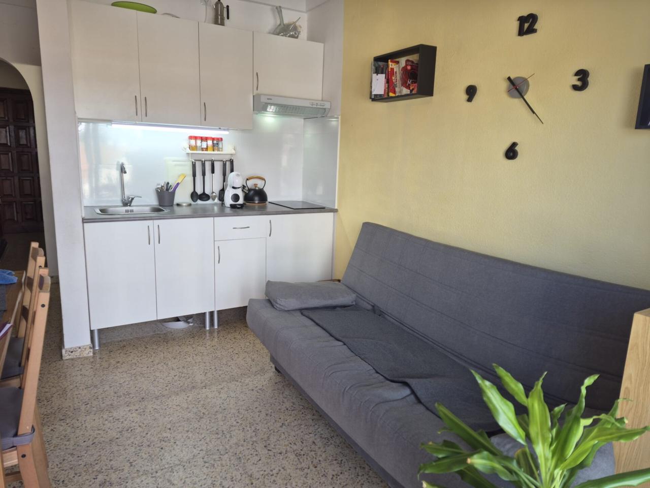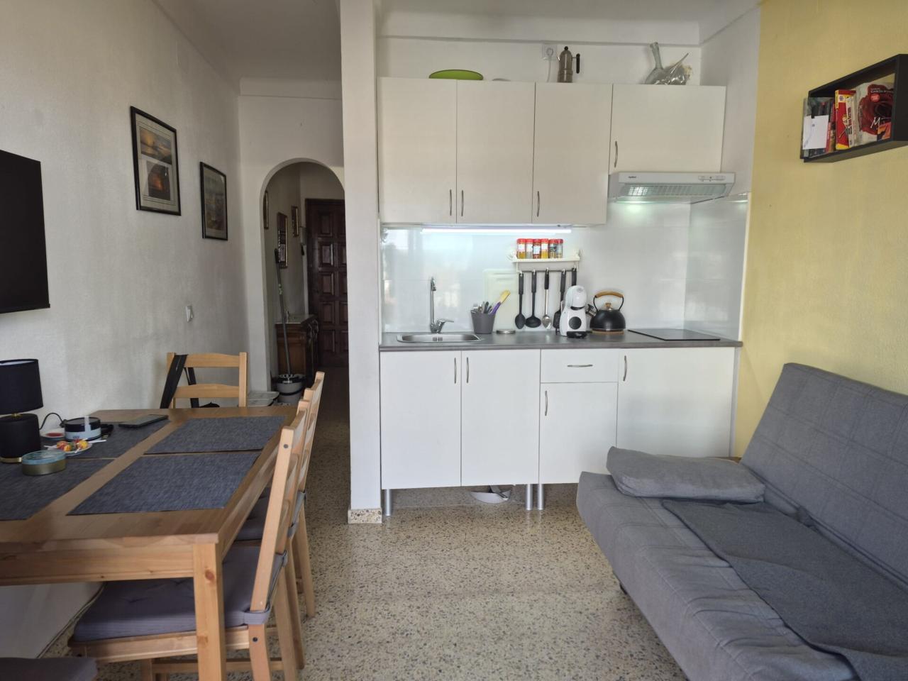 Estudio cèntrico de Empuriabrava, con balcon. Reformado. Esta distribuido en habitacion abierta, comedor-sala de estar con cocina reformada, baño y terraza.
